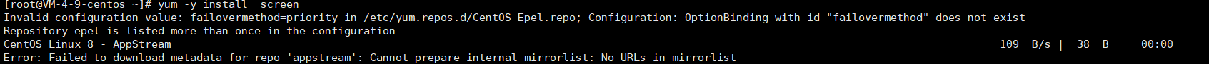 今天安装使用 yum install Screen -y 时出现了一些问题。