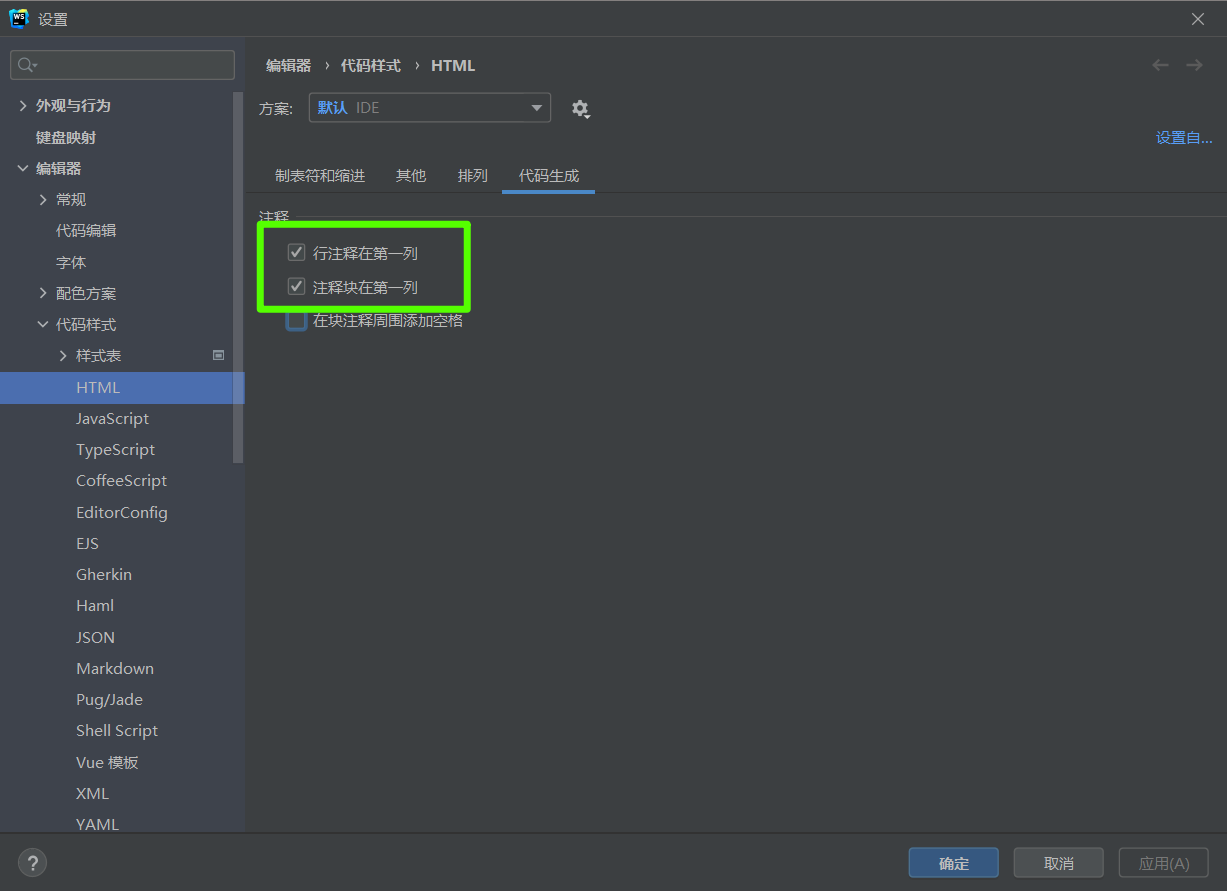 如果说出现了这种问题我只需要打开 设置-代码样式-HTML 代码生成取消掉下面的两个选项即可