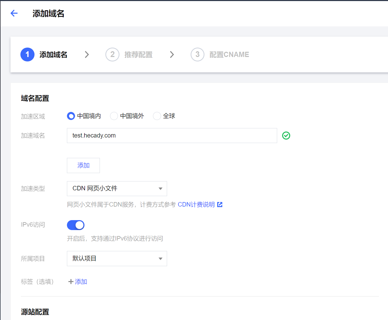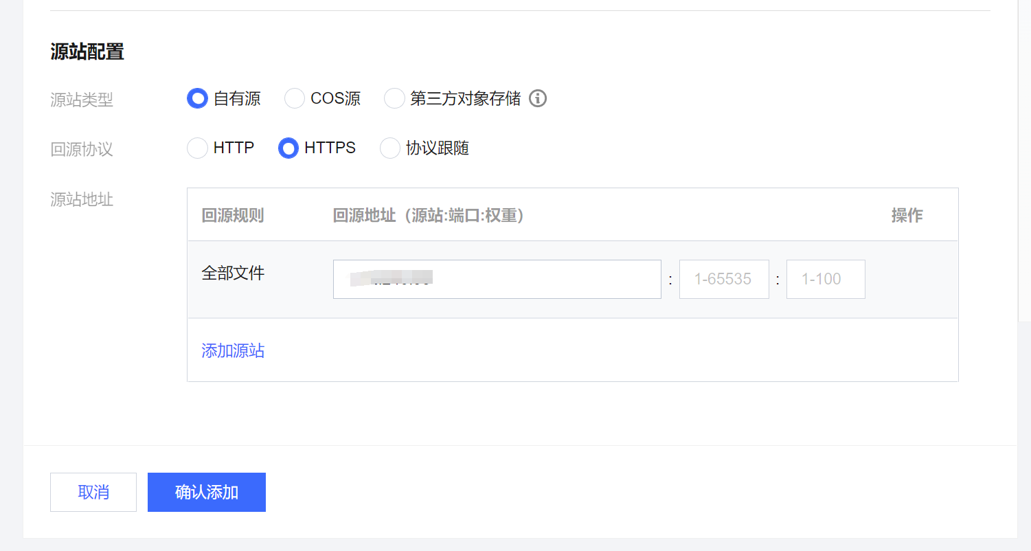 回源地址填写自己的服务器IP就可以了。确认添加就可以了。