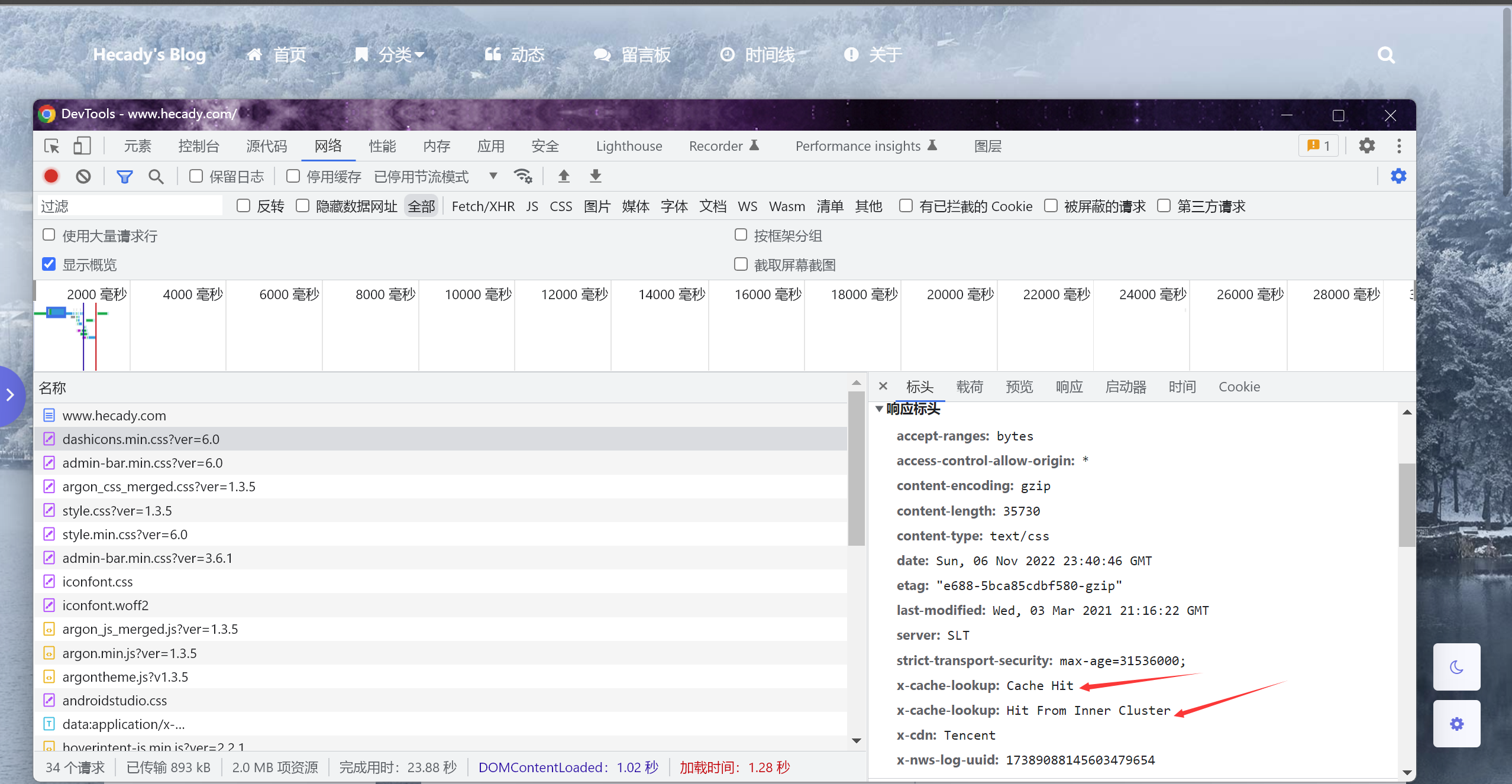 到这里,CDN配置就已经完成了,现在让我们看一下效果吧。这里看到浏览器的响应头已经有了对应的头。