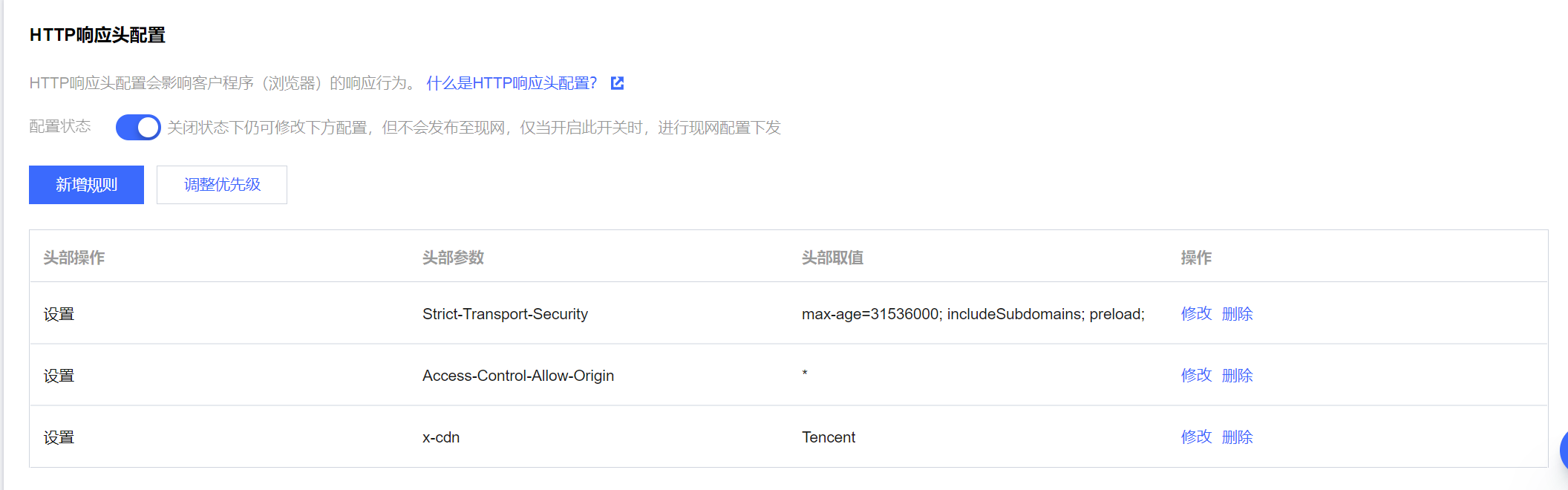 下面的HTTPS响应头配置,有跨域需求的话可以设置。详细请看这里的说明点我查看,Strict-Transport-Security设置可以看这篇文章 HTTP 严格传输安全