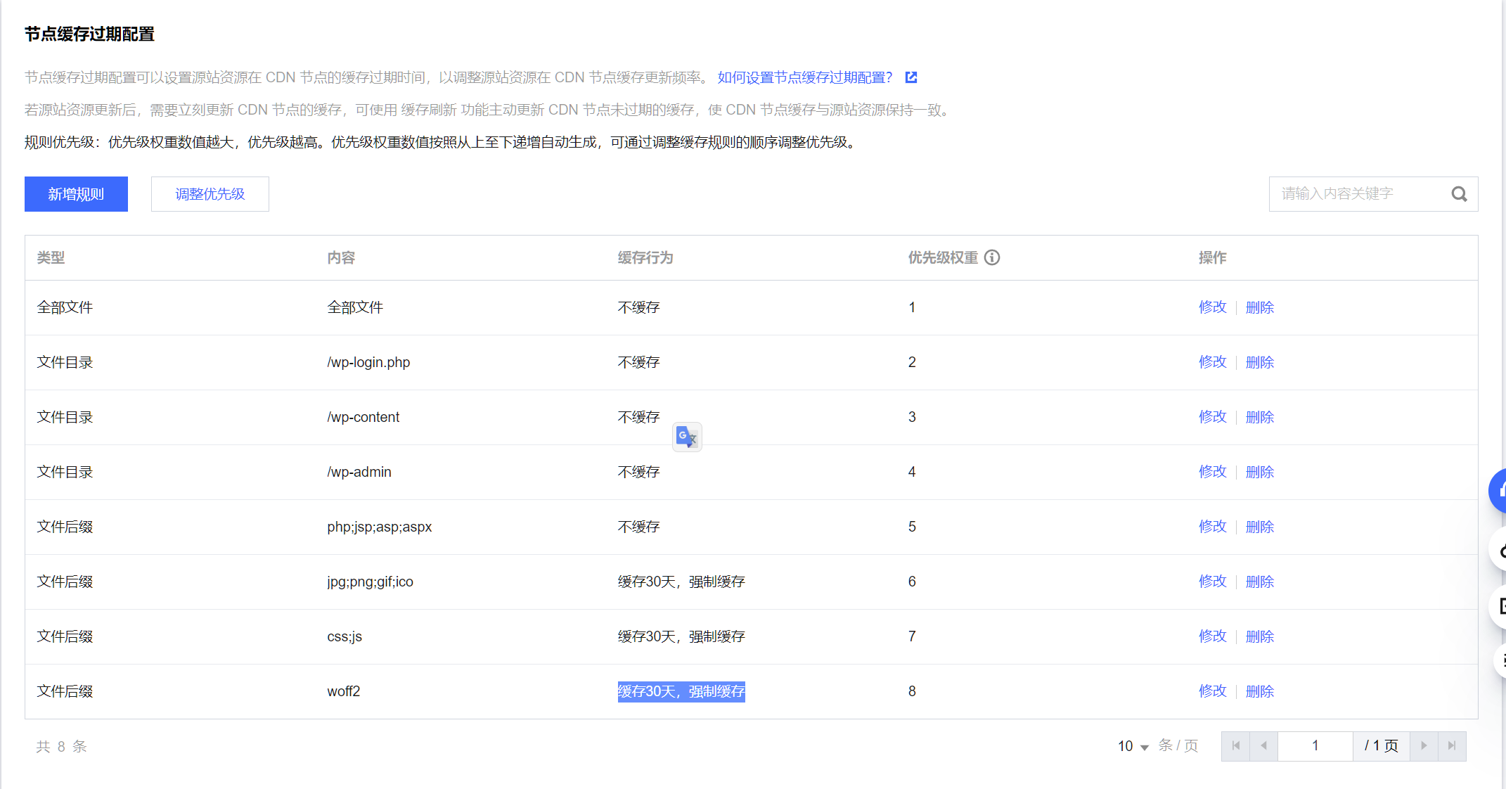 | 文件目录 | /wp-content | 不缓存 | 3 |